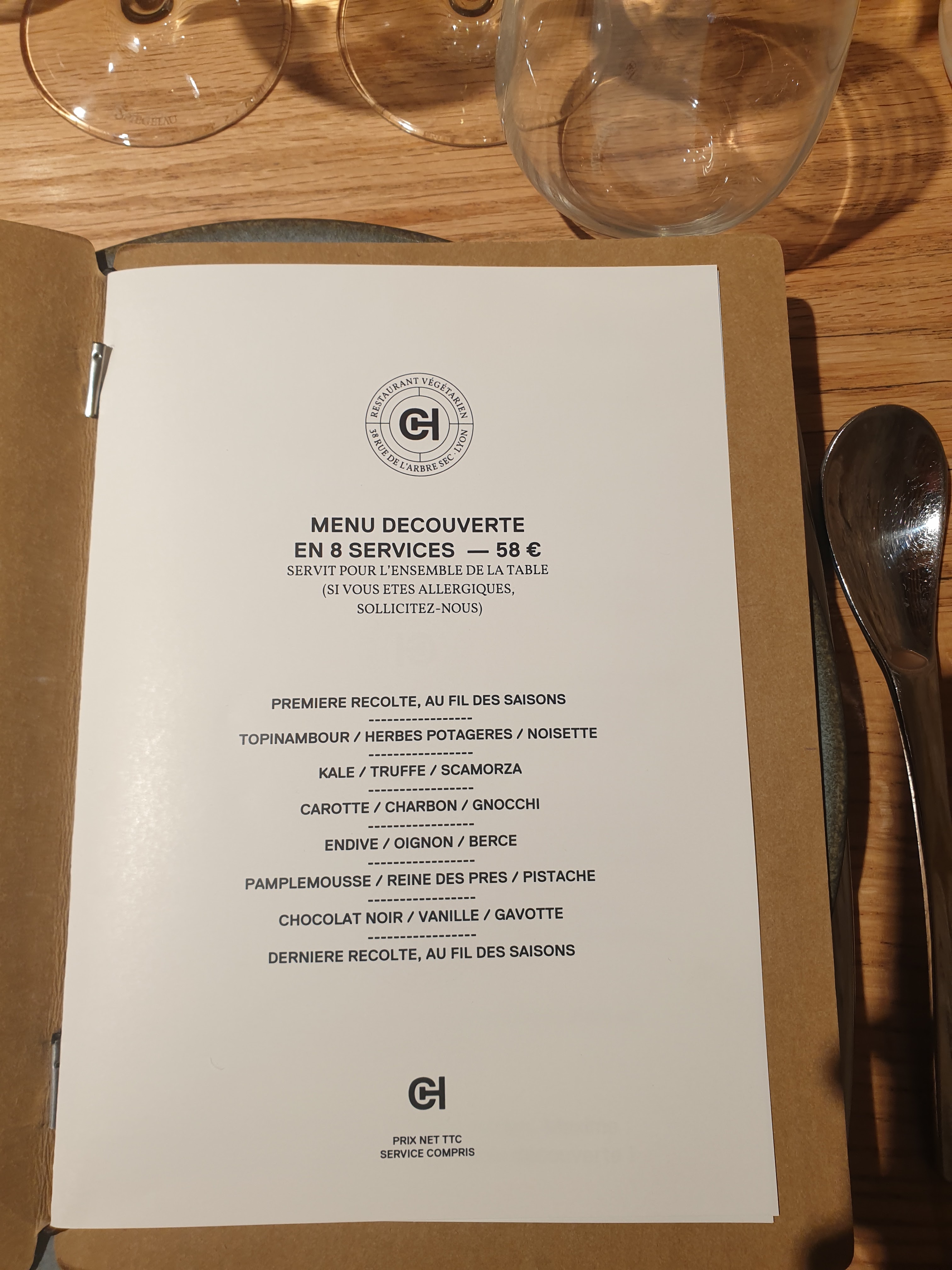 Posté le 23/06/2024 à 07:33"Un repas gastronomique et 100% végétarien à Lyon. Forcément ça donne envie. Et effectivement c'est délicieux et très original, sans aucun doute le meilleur restaurant végétarien que j'ai pu faire. L'ambiance est parfaite, très calme et le service très bon également. Je note cependant deux déceptions : 1) dans l'annonce des plats, certains ingrédients énoncés ne se retrouve que très difficilement dans le gout ce qui déçoit une fois en bouche 2) Pour le prix j'aurais espéré un peu plus d'explosion en bouche. C'était le cas pour certain plats à l'harmonie parfaite mais ce fut à mon sens assez inégal. Je recommande tout de même vivement."