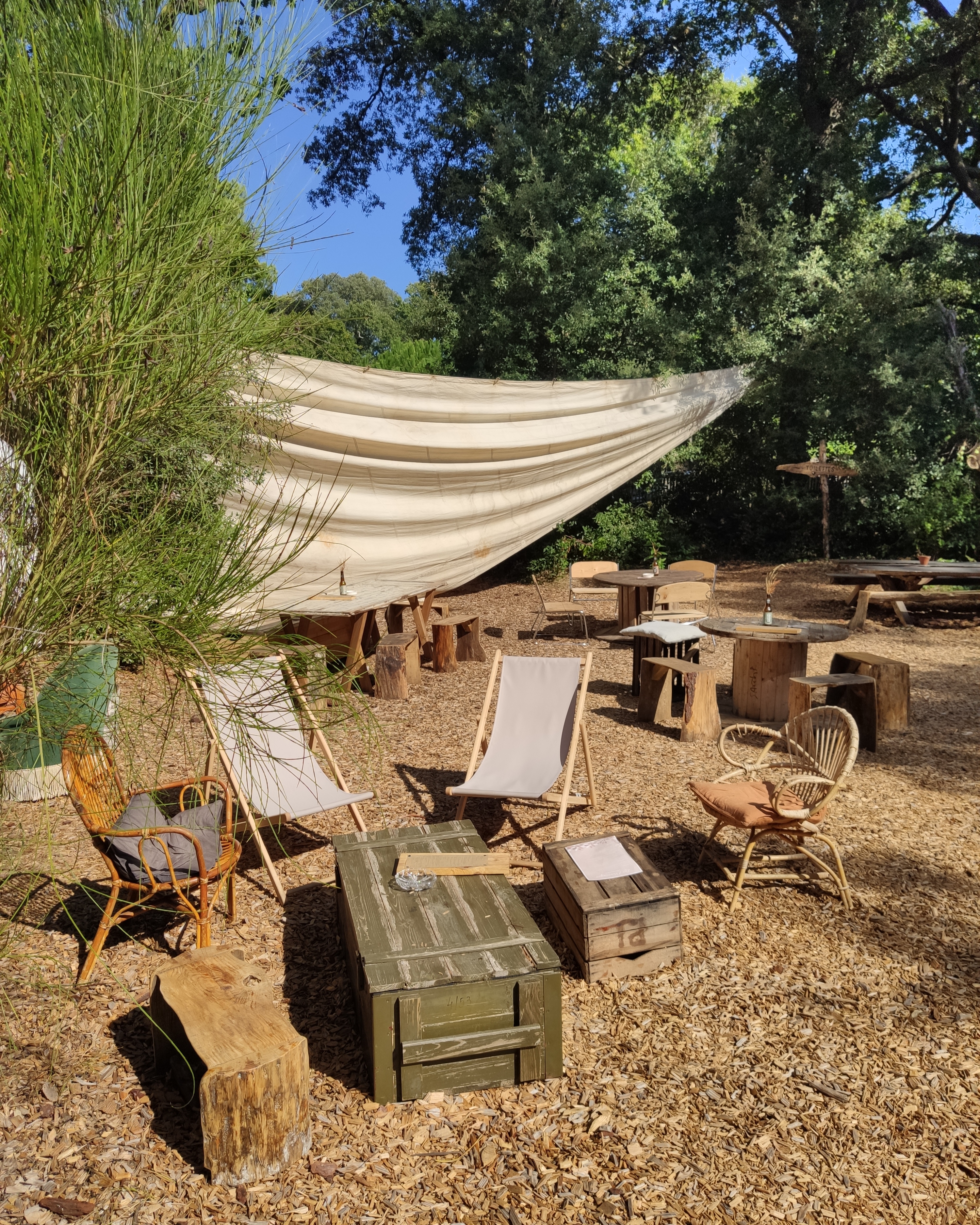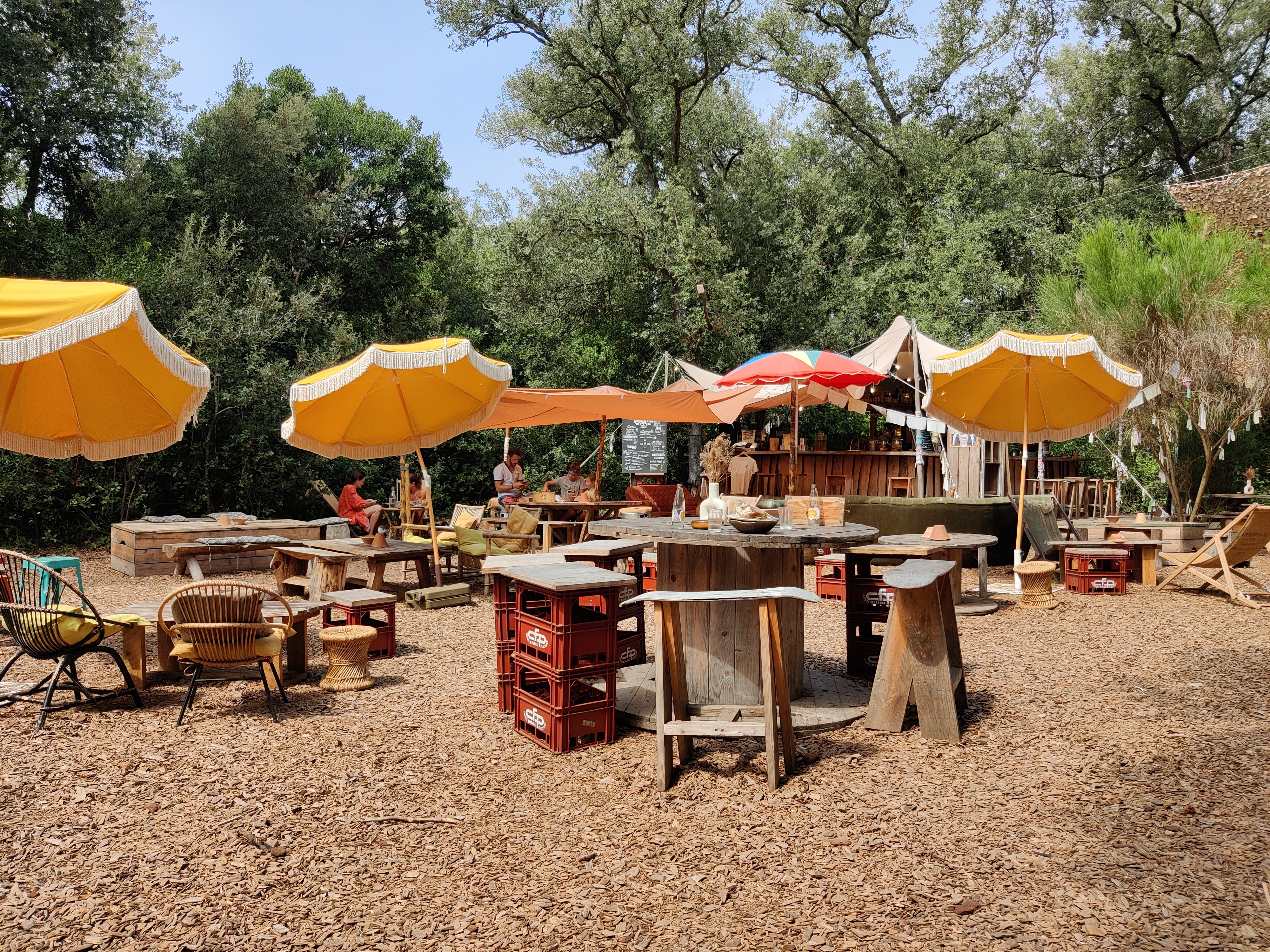 Le cadre est vraiment très sympa, ambiance très cool en pleine nature, copeaux de bois au sol, tables et assises en bois de récupération. Un grand parking juste à côté pour se stationner. Carte suffisante et diversifiée, mais les prix sont quand même élevés pour un bar tenu par une association. Juste quelques soucis dans la commande le jour où nous sommes allés mais bon on était en vacances, nous avions le temps donc rien de bien grave.