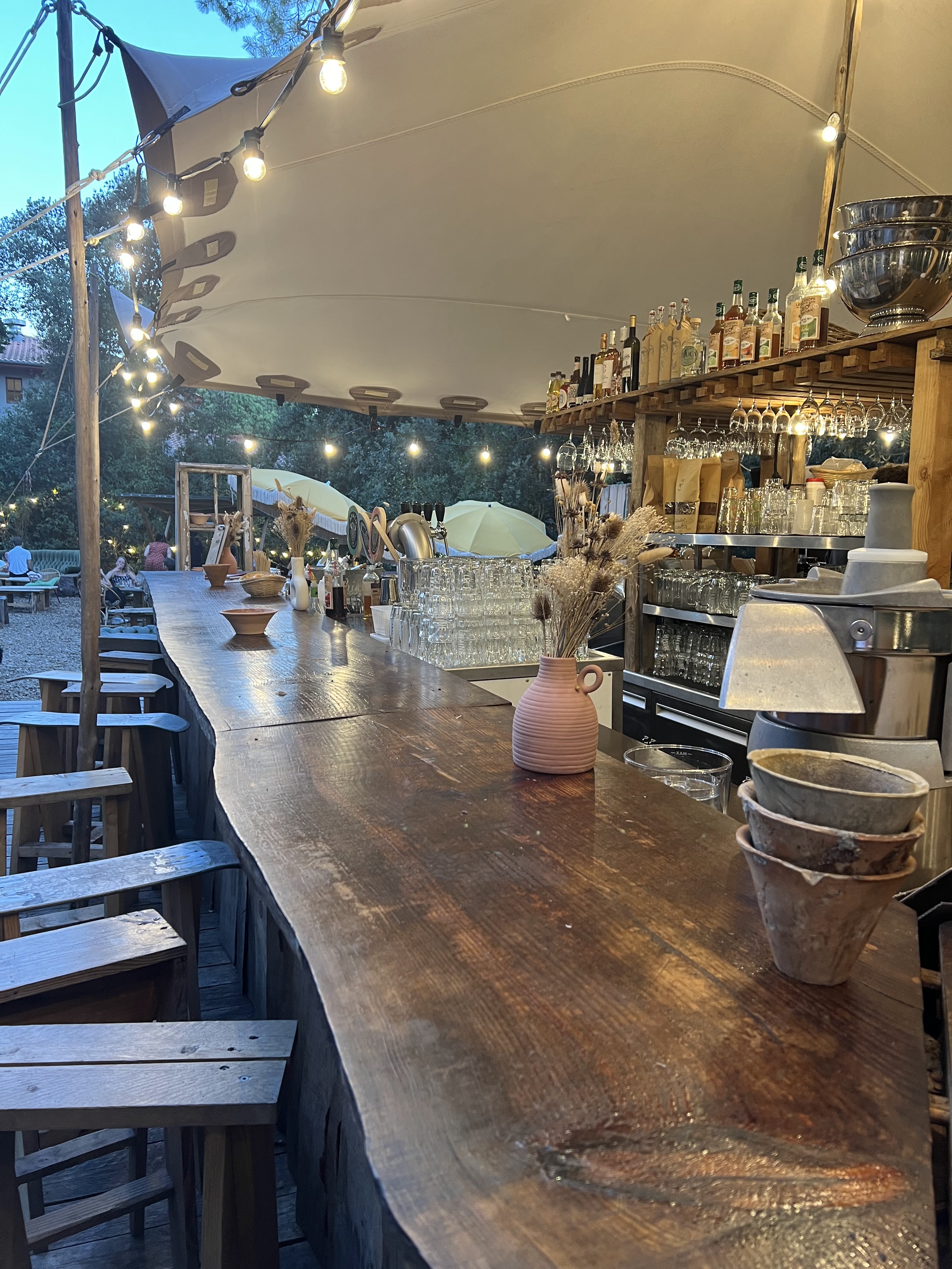 Un bar restaurant caché parmi les chênes vert. Services et produits au top. Belle pause.