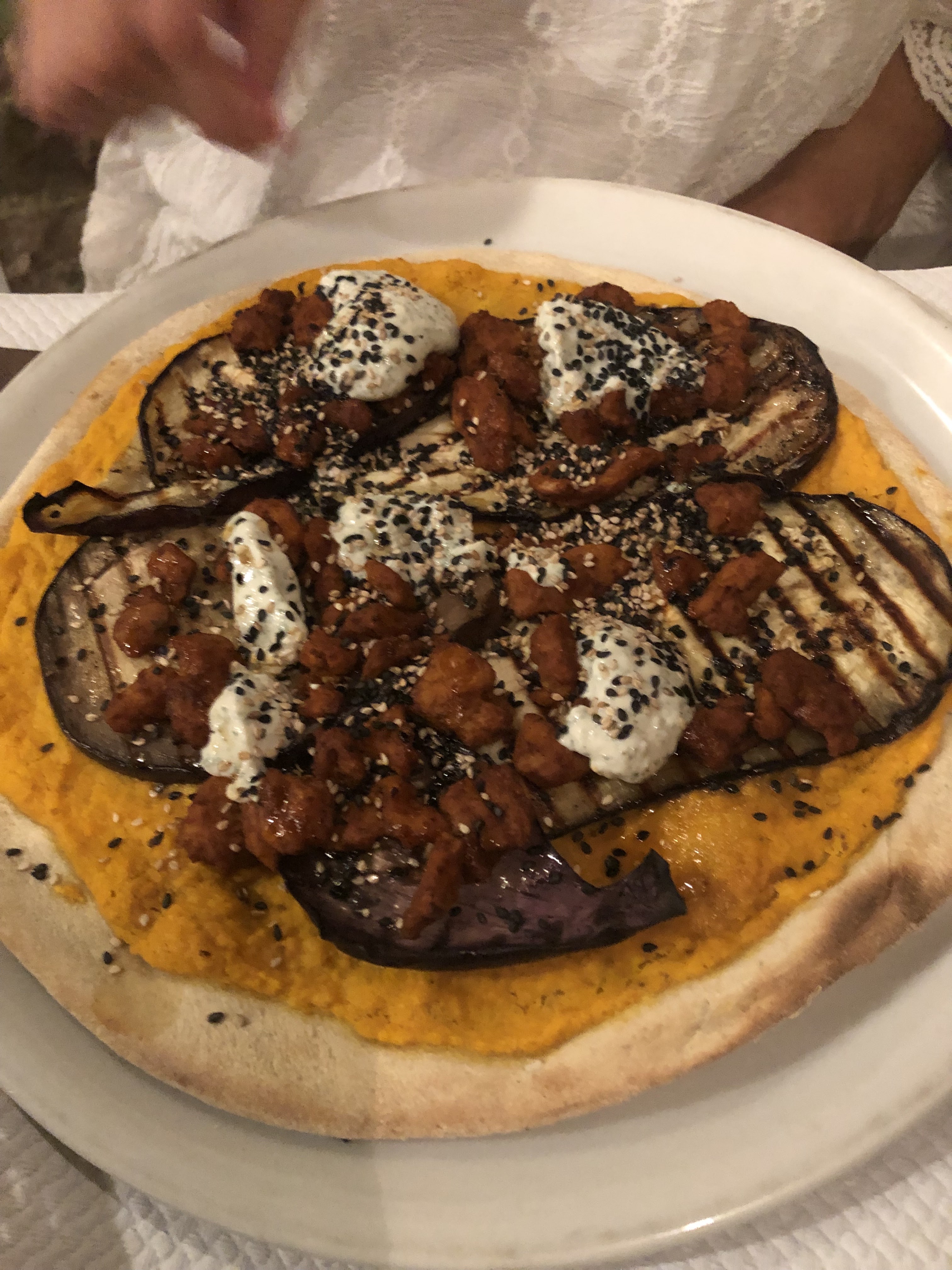 Très bonne surprise étant plutôt viande , je me suis retrouvé à apprécier une bonne pizza au houmous et aubergine excellente avec une pâte très bonne qui changé de toutes ces pizzas traditionnels, voilà un endroit où l'on deguste et ou le goût des bons aliments font plaisirs lorsque l'on fini le repas 👍super repas et très bon accueil merci