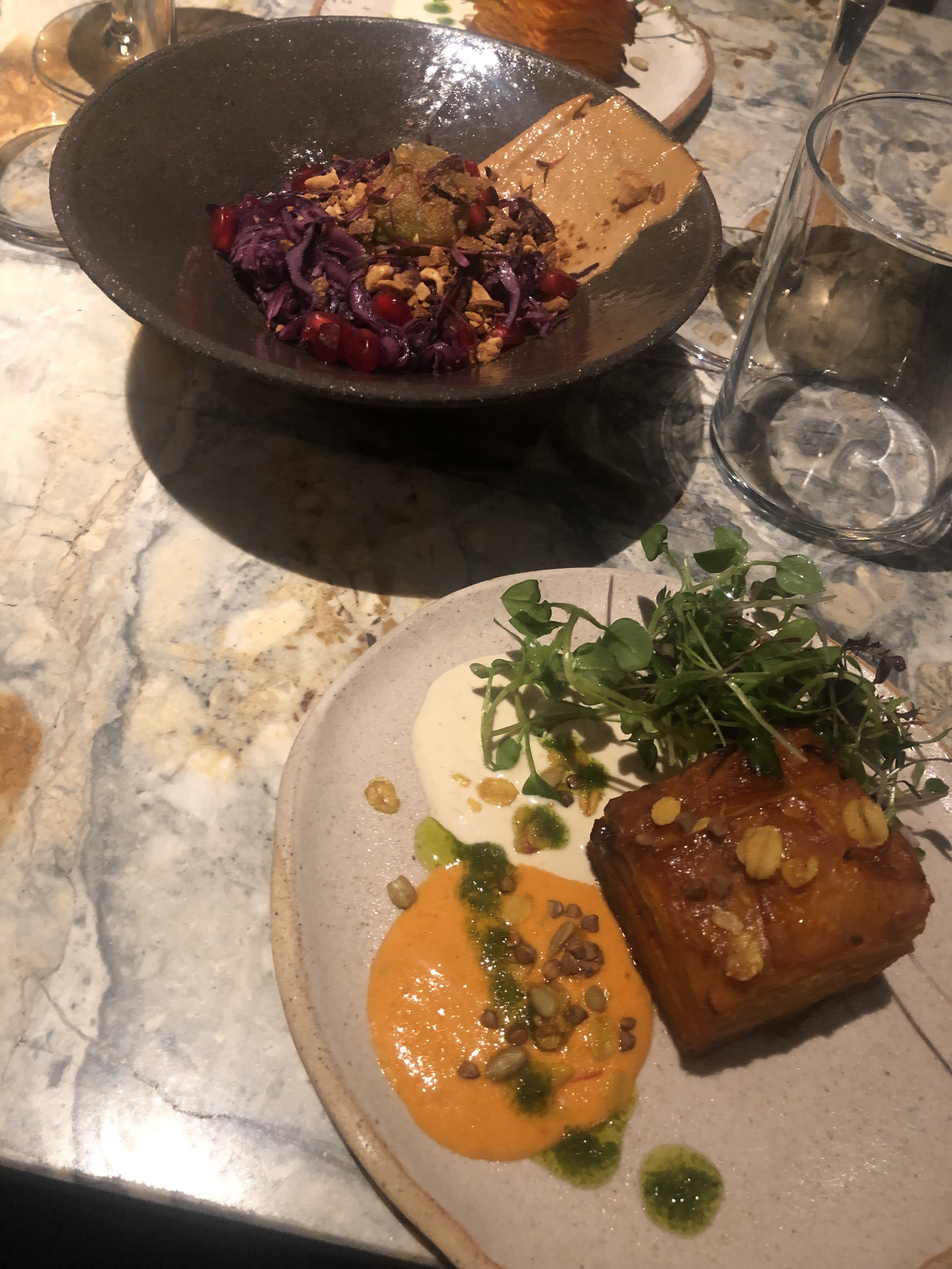 Posté le 02/01/2024 à 15:01" Nous avons passé un délicieux dîner à Mesa, avec un excellent service dans un environnement charmant. La nourriture était savoureuse et unique parmi les plats végétaliens que nous avons mangés jusqu’à présent en Europe. Comparée à d’autres plats végétaliens que nous avons mangés ailleurs, comme les restaurants Ottolenghi à Londres ou de nombreux restaurants végétaliens aux États-Unis (Portland, Seattle), la nourriture ne nous a pas impressionnés par sa créativité ou ses profils de saveurs. Chaque assiette était cependant délicieuse et joliment présentée. Les portions sont plutôt petites - les entrées sont de la taille d'entrées - mais tout était parfaitement cuit ! "