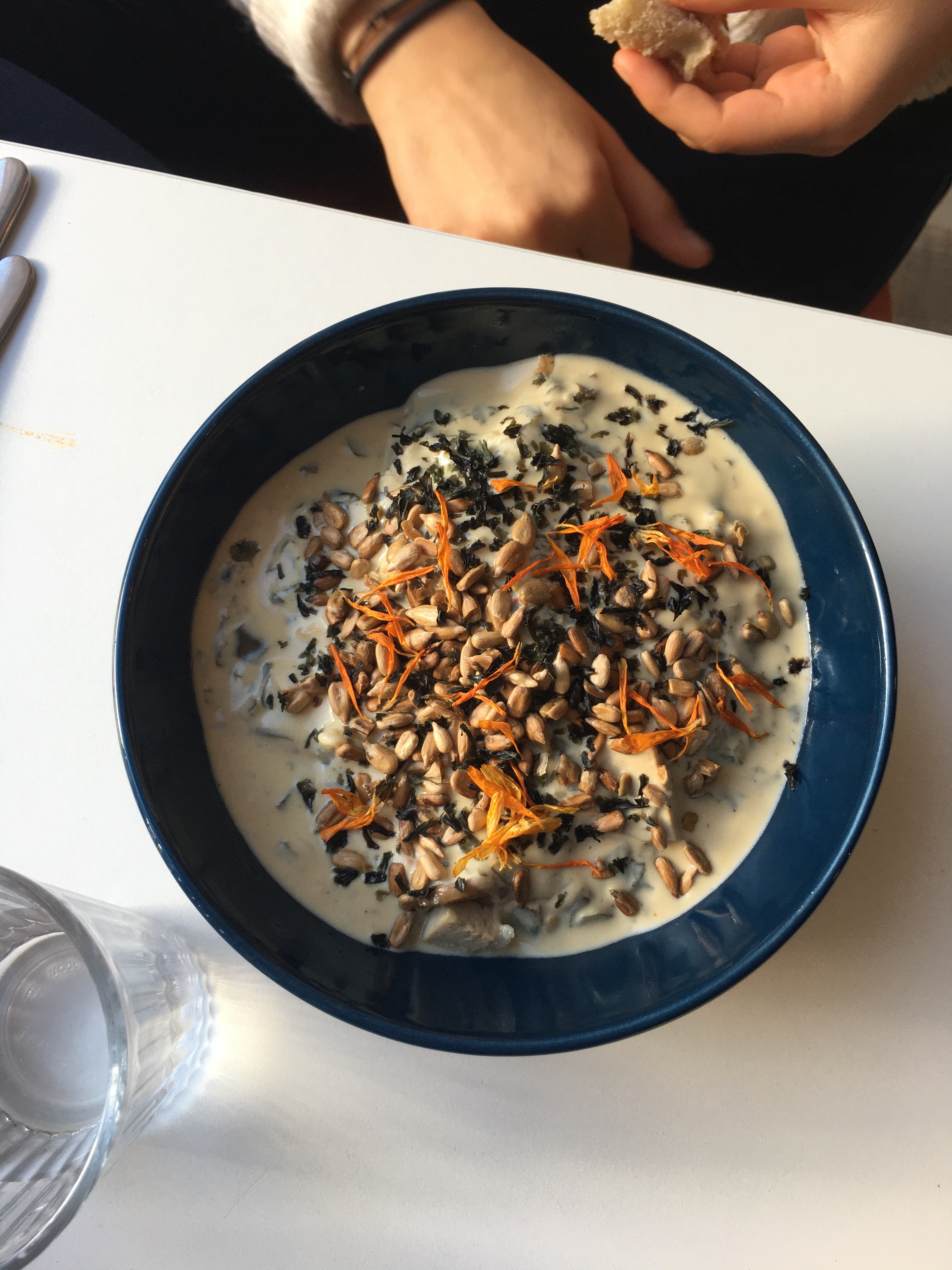 C’est la première fois que je mange dans un restaurant vegan. Franchement je me suis régalée, la soupe de courge, très bonne, le plat principal avec les poireaux délicieux, et pour finir le brownie, un régal. Je mettrais juste un bémol sur les serveuses qui a mon sens, manque un peu d’amabilité 😃. Autrement agréable moment et belle découverte.