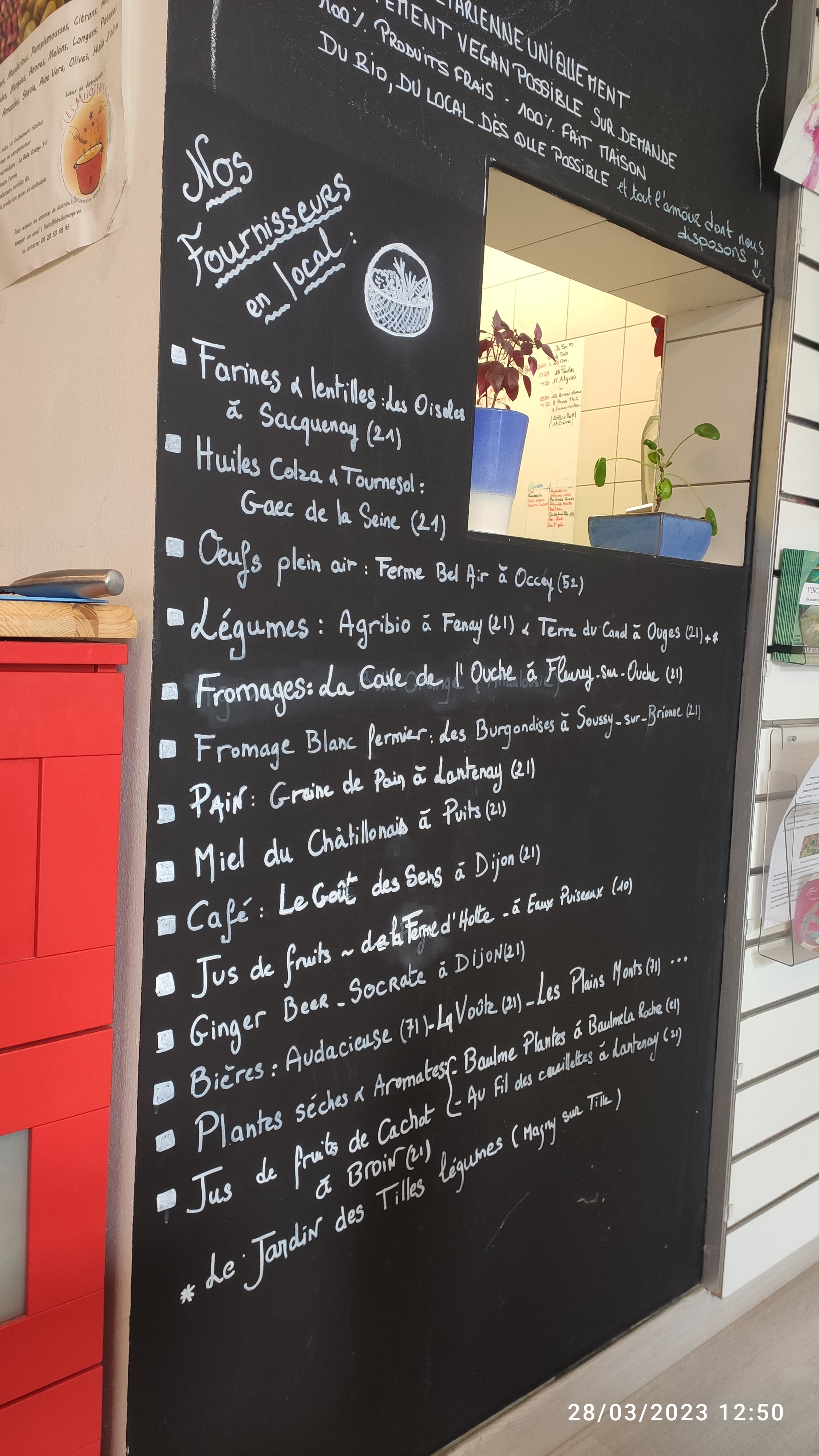 Lieu cosy pour manger le midi, tout est fait maison, local, de saison et végétarien, bref que de bonnes choses. Possible d'emporter (à minima les boissons). Réservation conseillée. Mini épicerie sur place avec produits locaux.